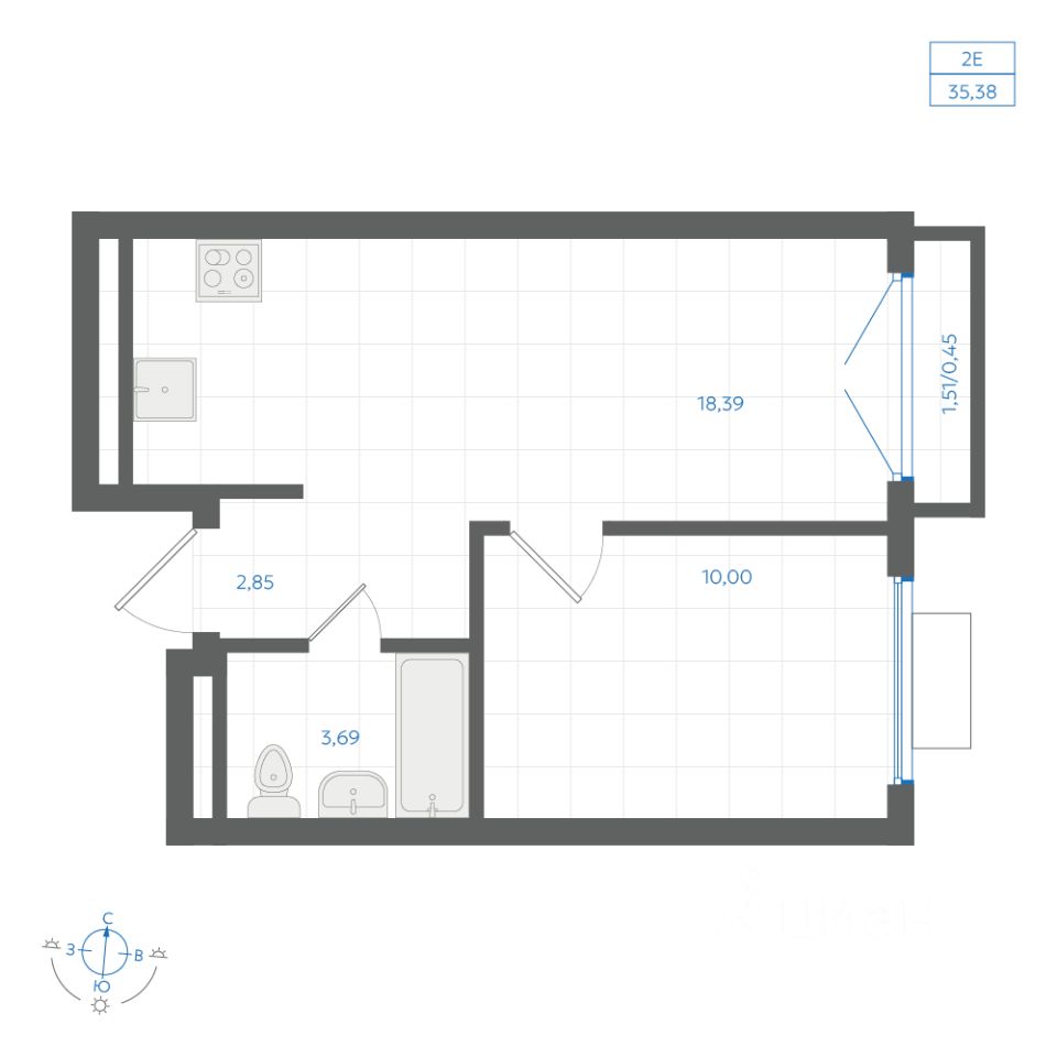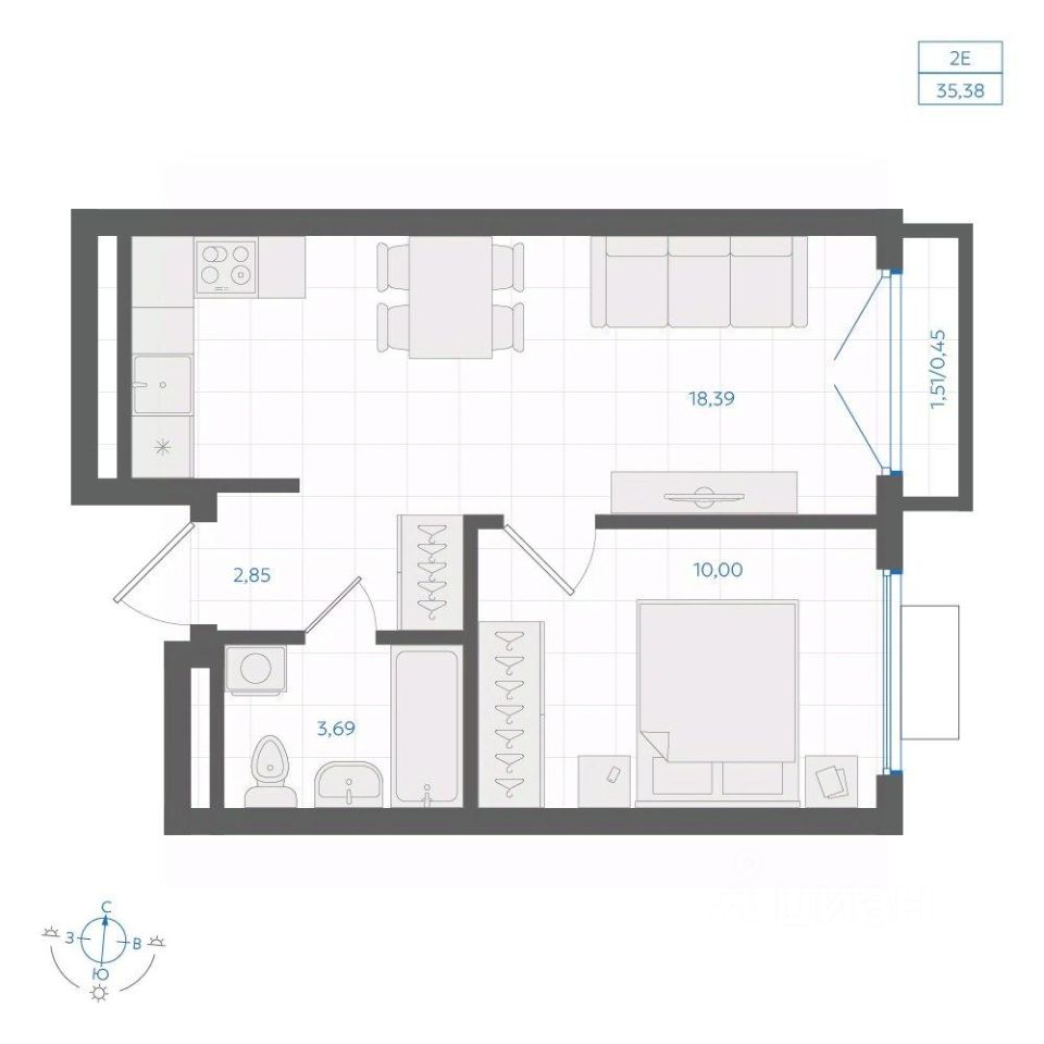 Общая площадь35,38 м2