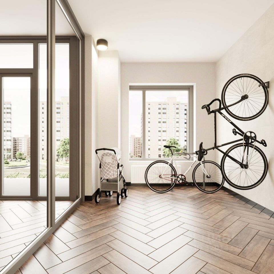 Квартиры комфорт-класса площадью до 77 кв.м с чистовой отделкой. Стильные и уютные холлы с помещениями для детских колясок и велосипедов.