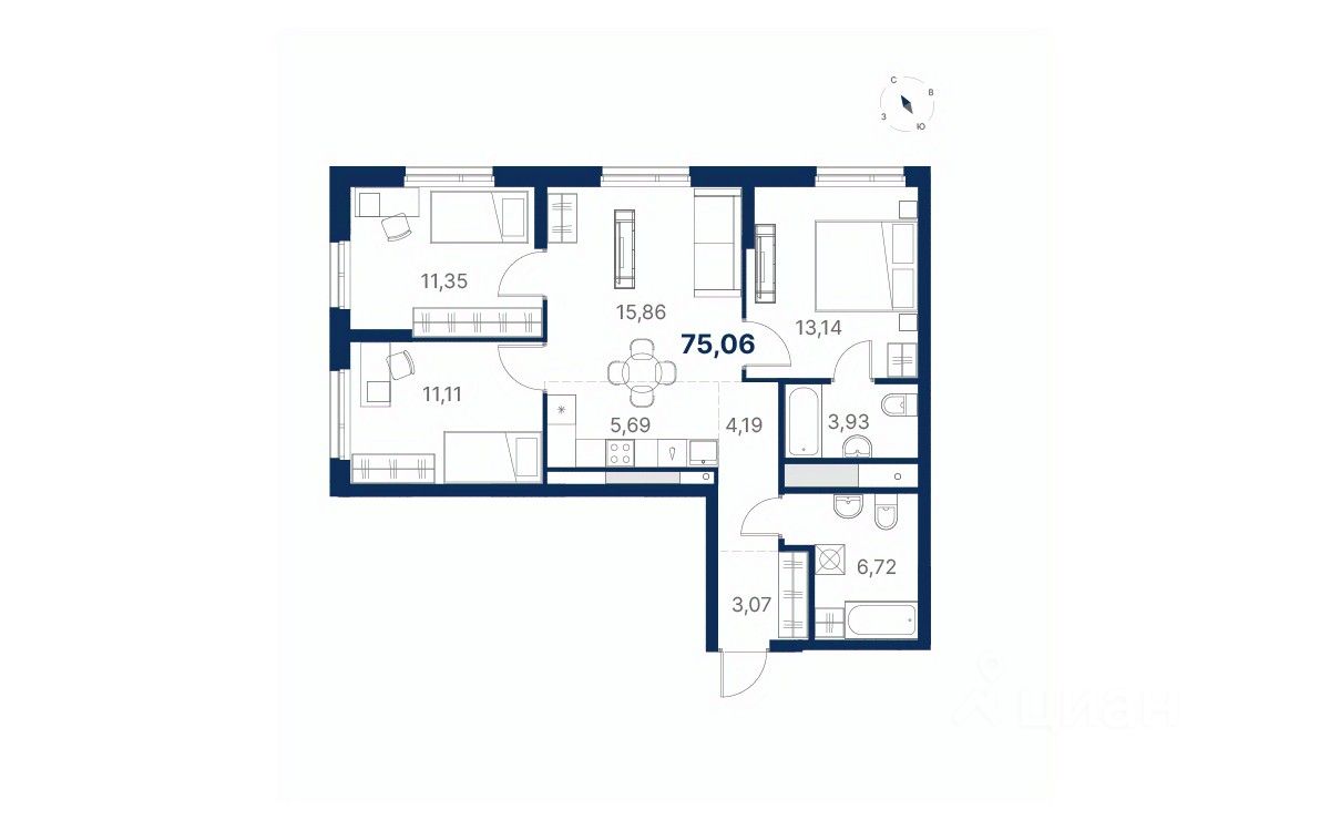 Просторная квартира в ''Атлас Юник'' — выбор большой семьи и тех, кто ценит пространство и комфорт. Здесь найдётся место для детской, кабинета, уютной спальни и гостиной, где собираются близкие.