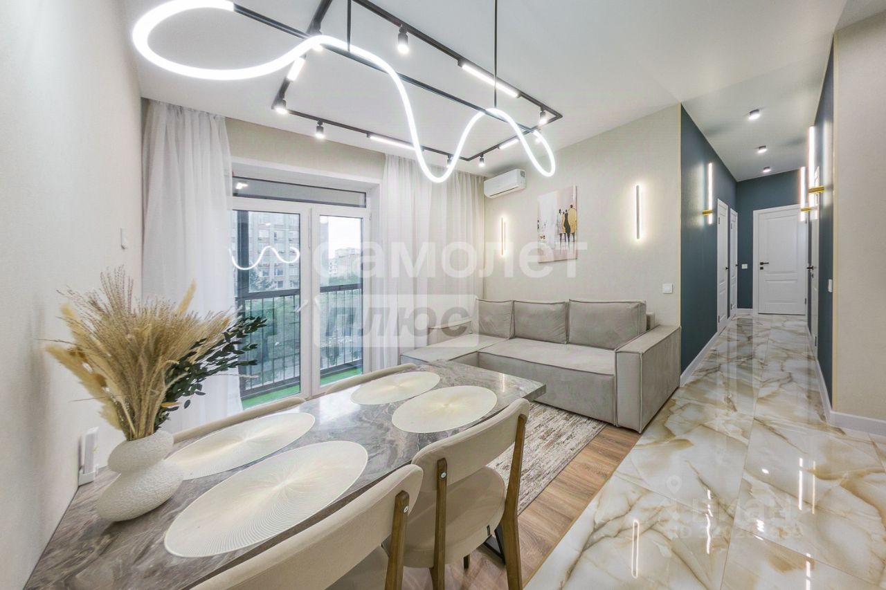 Квартира выполнена с качественным ремонтом, где использованы высококачественные материалы отделки, мебели и интерьера. Ранее не сдавалась! Преимущества квартиры: - удобная планировка: две изолированные комнаты и просторная кухня-гостиная - два санузла - в квартире имеется вся необходимая мебель и техника для комфортного проживания, включая кухонный гарнитур с техникой, телевизор, встроенные шкафы, диван и двуспальная кровать с матрасом - кондиционеры для поддержания комфортного климата, теплый пол