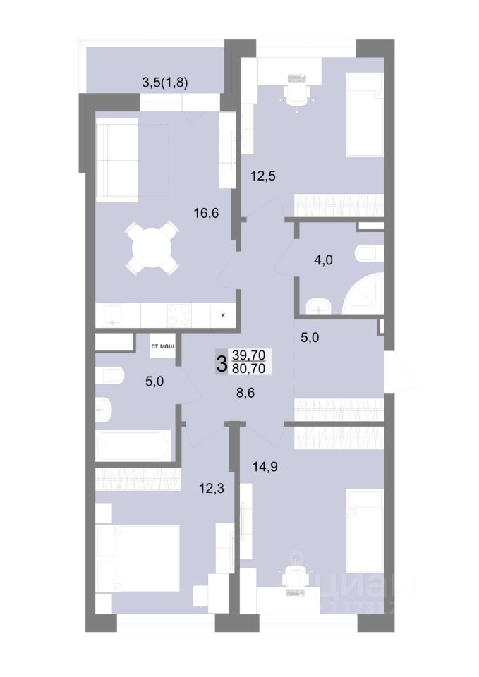 Общая площадь80,7 м2