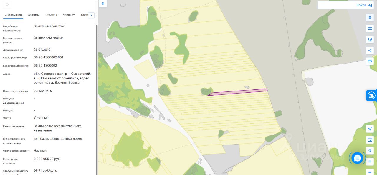 Участок сельскохозяйственного назначения в собственности 2,3 га (23132 кв.м) для создания дачного поселка.
