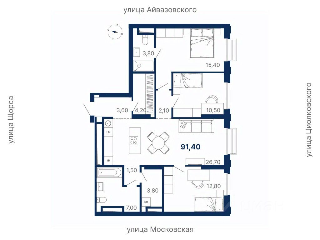 продам 3-к, Московская, 243/4 стр.20 540 690 ₽