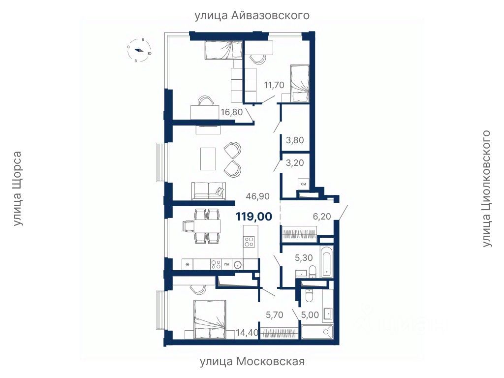 продам 3-к, Московская, 243/4 стр.25 060 521 ₽
