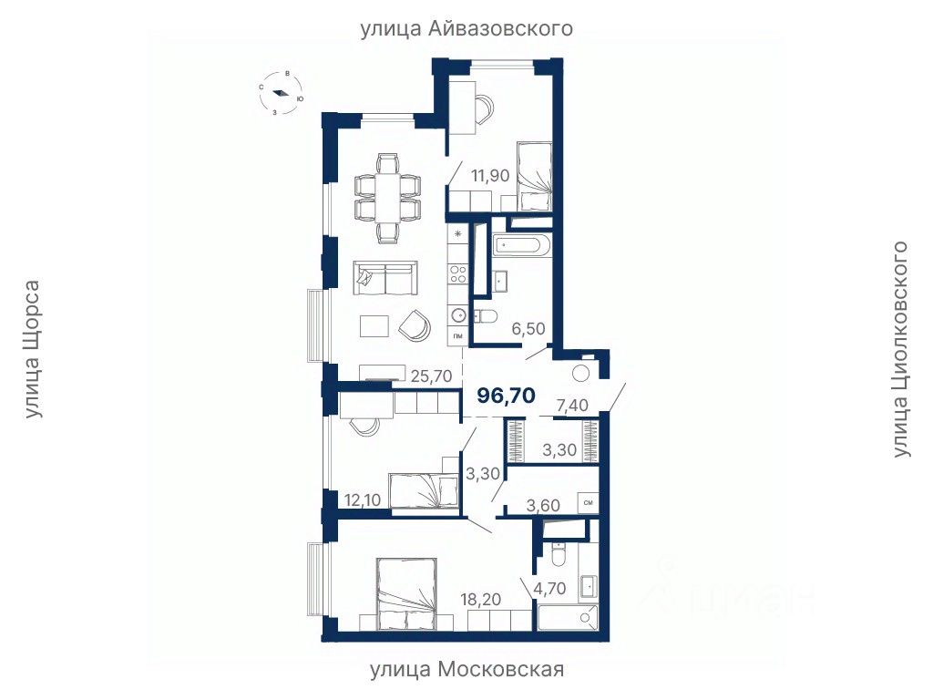 Локация — между ул. Московская, Щорса, Айвазовского и Циолковского, в шаговой доступности от метро Чкаловская.