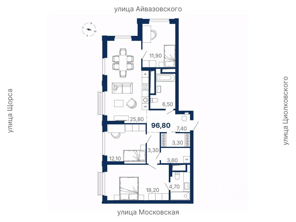 Локация — между ул. Московская, Щорса, Айвазовского и Циолковского, в шаговой доступности от метро Чкаловская.