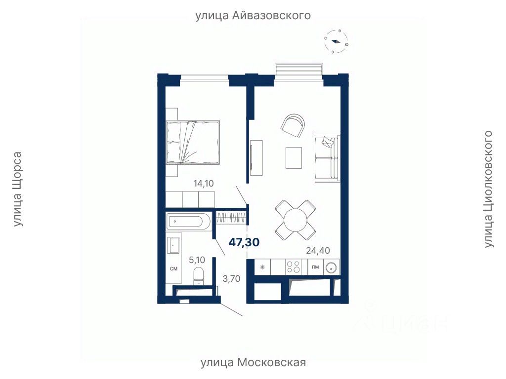 продам 1-к, Московская, 249/3 стр.11 459 612 ₽