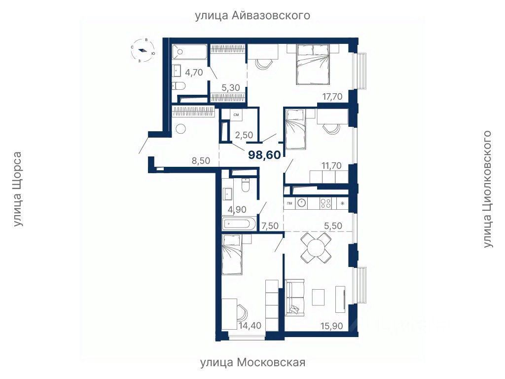 продам 3-к, Московская, 249/3 стр.21 480 449 ₽