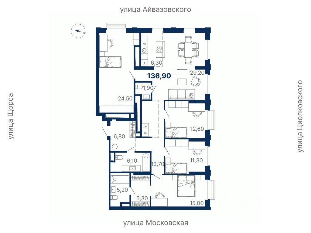Локация — между ул. Московская, Щорса, Айвазовского и Циолковского, в шаговой доступности от метро Чкаловская.