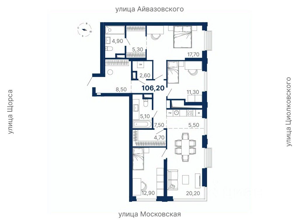 продам 3-к, Московская, 249/3 стр.23 542 041 ₽
