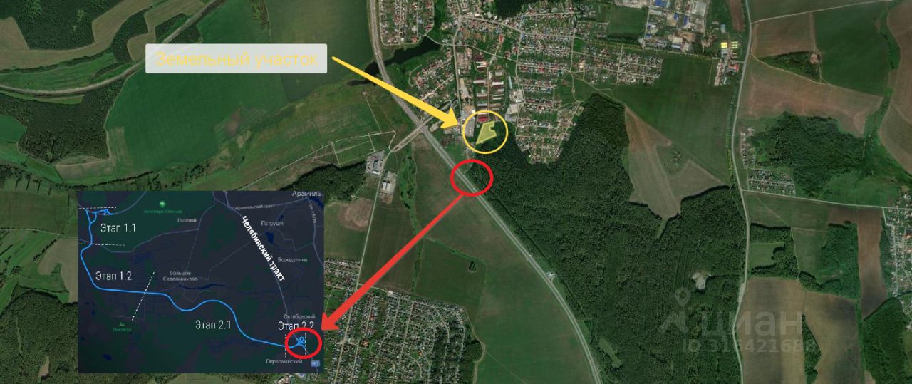 Продается земельный участок с холодным ангаром расположенный в п.Октябрский, Сысерского района Кад номер земельного участка : 66:25:1501006:1051 S-1.39Га Ангар: -S-1080м2 -Пол -бетон -2-ое ворот 4.5 высота 5м Высота ангара 7.1м Проведена планировка участка Получено ТУ на 100Квт(заведено в ангар) На границе участка проходит газ низкого давления В непосредственной близости от учаcтка будет построена развязка инфраструктурного проекта, новой магистрали от Челябинского тракта к транспортно-логистическому центру Большое Седельниково Земельный участок можно увеличить на 1,3Га за счет присоединения соседнего участка с кадастровым номером 66:25:1501006:1054, общая площадь будет составлять 2,69Га, на прирезаемый участок также получены тех условия на присоединение 50Кв