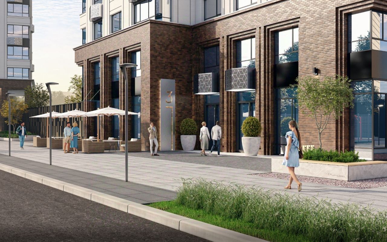 Квартал состоит из четырех 27-этажных домов. В домах — уютные студии, однокомнатные, двухкомнатные, семейные трехкомнатные квартиры. А для ценителей редких форматов квартиры с террасами. Парадный вестибюль с камином и кафе, двор с лаунж-зонами, фонтаном, сенсорным садом, детскими и спортивными площадками внутри.