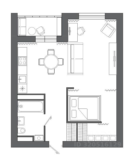 Практичная планировка для вашего комфорта: •Вместительный шкаф 120см в прихожей, выделенная грязная зона. •Универсальное решение в сан узле, сделаны выводы и под ванну, и под душевую кабину. Большой зеркальный шкаф под принадлежности. •Зона спальни под кровать 160х200см.