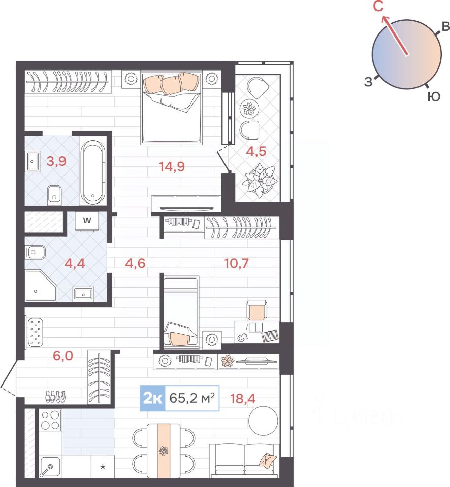 Общая площадь65,2 м2