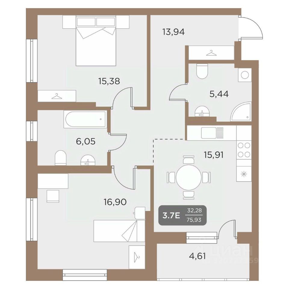 Общая площадь75,93 м2