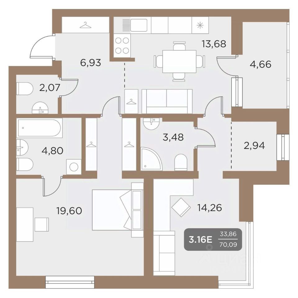 Общая площадь70,09 м2
