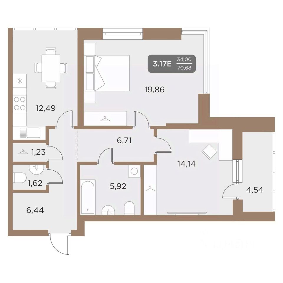 Общая площадь70,68 м2