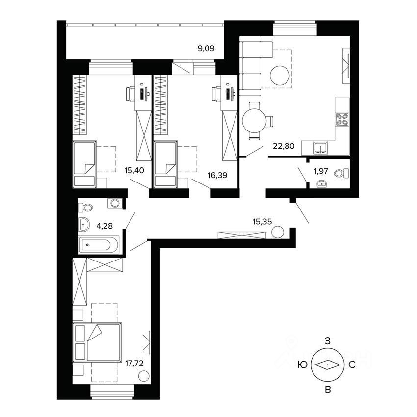 Жилая площадь60 м2