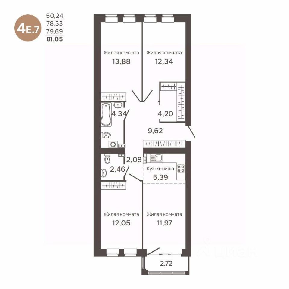 Общая площадь79,69 м2