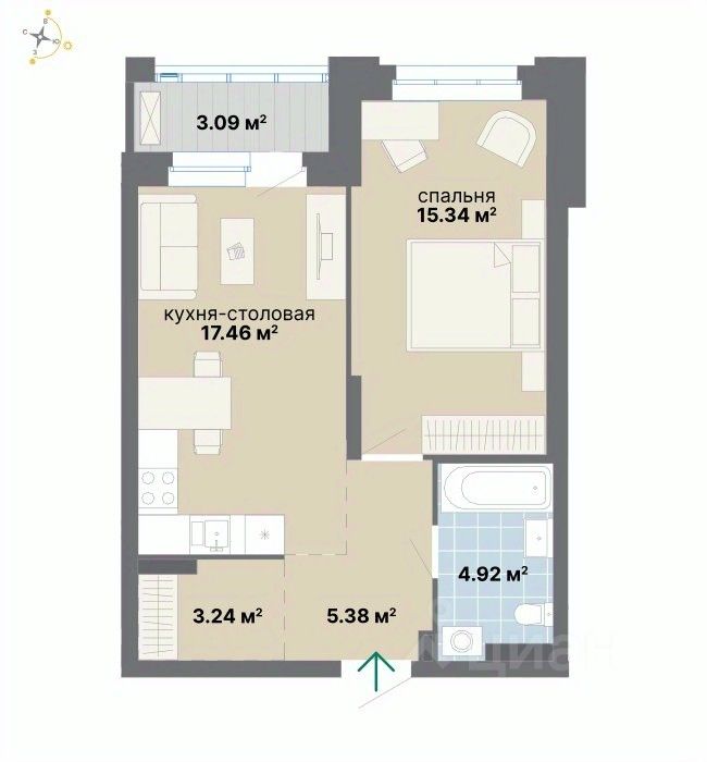 продам 1-к, Циолковского, 3 стр.9 400 000 ₽