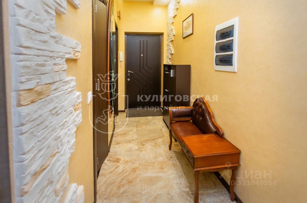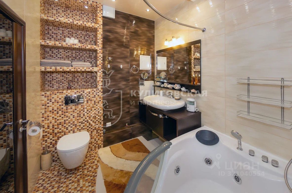 Ремонт выполнен по дизайн-проекту с использованием качественных материалов: стены отделаны бамбуком и камнем, в кухонной зоне полы из керамогранита с подогревом, в санузлах — плитка и мозаика. Светильники и люстры создают ощущение мягкого сияния в каждом уголке квартиры. Квартира продаётся с мебелью и встроенной техникой.