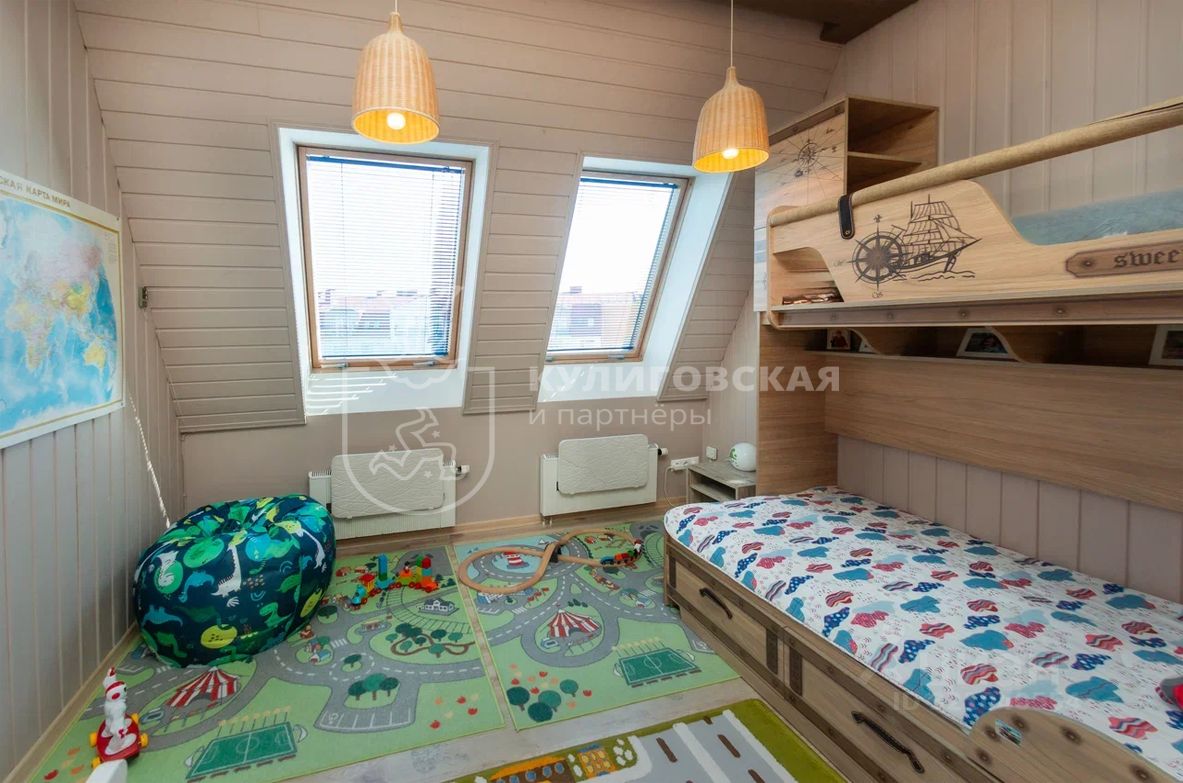 Квартира расположена на 4-м этаже малоэтажного дома. Высокие потолки 3,3 м и мансардные окна наполняют пространство воздухом и светом. Планировка продумана для семьи: большая кухня-гостиная, где удобно собираться вечерами, спальня, детская комната, гардеробная, ванная и отдельный гостевой санузел.