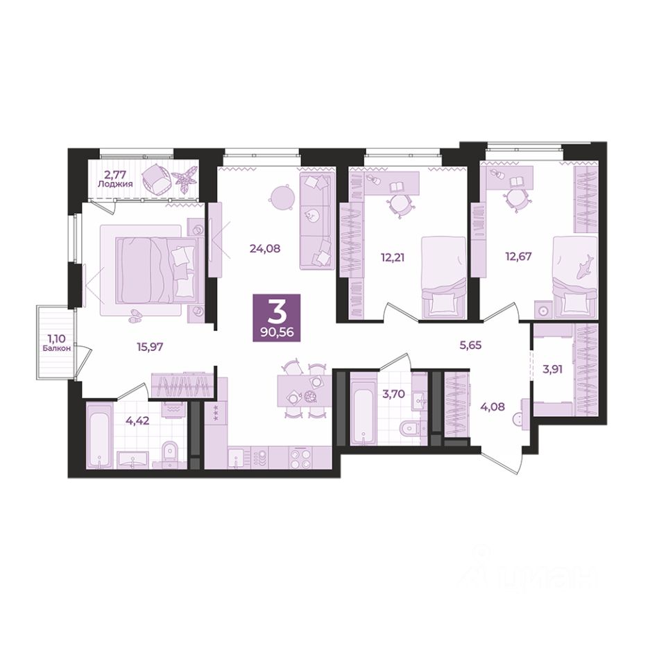Общая площадь90,56 м2