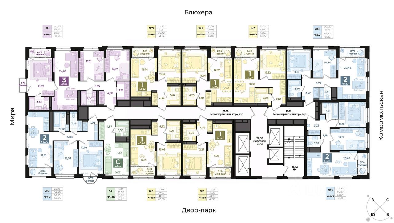 Современная архитектура. Долговечные фасады из навесных панелей и штукатурки, увеличенные окна и французские балконы формируют уникальный узнаваемый образ. Ночная подсветка выделяет дом среди застройки района и подчеркивает выразительность его силуэта. Двор без машин. Игровые площадки для детей разных возрастов, места отдыха и занятий спортом для взрослых не соседствуют с парковкой. Динопарк. Игровые зоны созданы в стиле таинственного мира динозавров. Парк во дворе. Многоуровневое озеленение c прогулочными дорожками, беседками и качелями. Три уровня безопасности. Контроль доступа по карте жителя, эффективная система видеонаблюдения, консьерж-сервис. Дизайнерские холлы. Парадный холл с остеклением в пол, зонами ожидания, гостевым санузлом и санузлом для мытья лап животным, а также колес велосипедов и колясок. Сервисная компания от застройщика. Обслуживанием дома будет заниматься профессиональная команда. Строительные и технические преимущества.