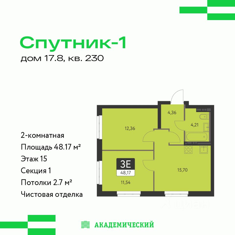 продам 2-к, Академика Ландау, 17/88 403 000 ₽