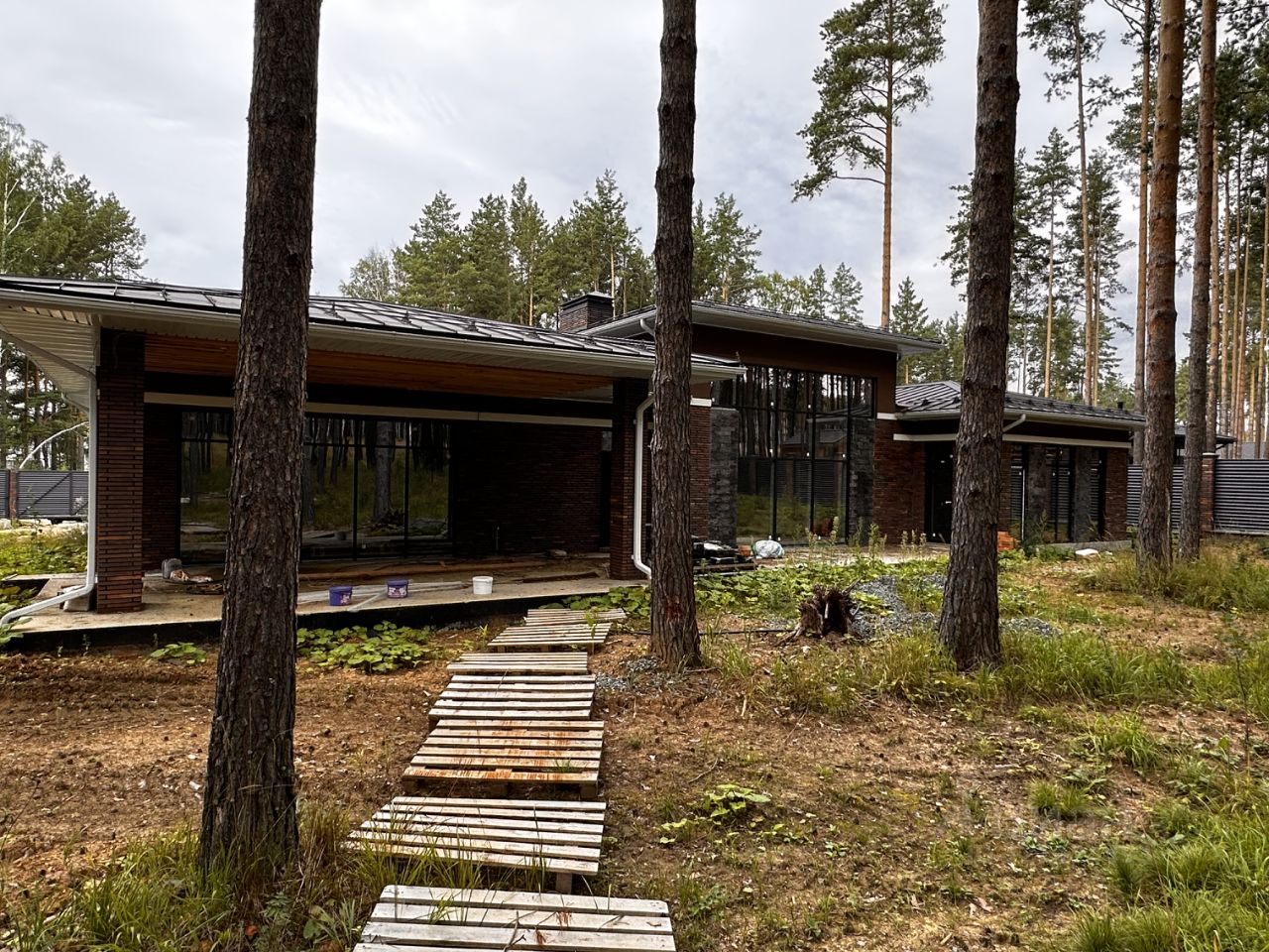 Продается дом общей площадью 518.6 м2, в предчистовой отделке на большом участке 22,2 сотки выходящем прямо в лесной массив. Дом в стиле Райт(стиль прерий), построен из материалов премиум класса, строился с любовью для своей семьи. Кирпич ручной формовки евроразмера завода Скрябин, внутри газоблок ИНСИ. Фальцевая кровля премиум сегмента, на заказ Московская область. К дому подключён газ. Котельная собрана полностью нержавеющей трубой, установлено два Немецких котла Vaillant, плюс резервный электрический Proterm. Насосные группы тоже премиум качества. В доме предусмотрен бассейн размером 7,5 на 3,5 метра, под бассейн залита бетонная чаша. Предусмотрено помещение под хамам. Расположение комнат и помещений в доме продумано до мелочей . Окна выполнены из алюминиевого качественного профиля на одной из крупнейших фабрик города Екатеринбург. Во всю стену зала сделано витражное окно выходящее в лес. В доме полностью разведено отопление, водяные тёплые полы. Возле окон внутрипольные конвекторы. Согласно проекту полностью разведено электричество. Внутренний дизайн помещений будет создан непосредственно под ваш вкус. Забор вокруг участка сделан из серого профиля типа жалюзи. На воротах электропривод. В доме находится гараж. Ещё один гараж не отапливаемый, находится во дворе , непосредственно с воротами прямо с общей дороги. В углу участка расположена баня домик 54.9 м2, для друзей, в которой могут остановиться гости. Можно уединиться мужской (женской) компанией друзей или знакомых и спокойно посплетничать). К бане-дому подведен газ и установлен котел. Пробурена скважина под воду специально для бани. Установлен септик. Дом-баня это отдельно стоящее автономное сооружение!!! Участок ждет воплощения Ваших идей в дизайне ландшафта. Участок большой, есть где разгуляться. Все дополнительные вопросы, в разговоре. Торг.