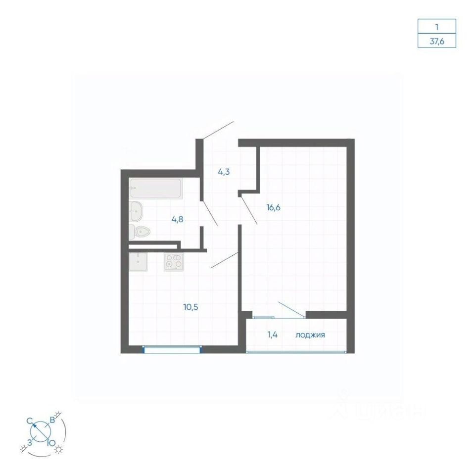 Общая площадь37,6 м2