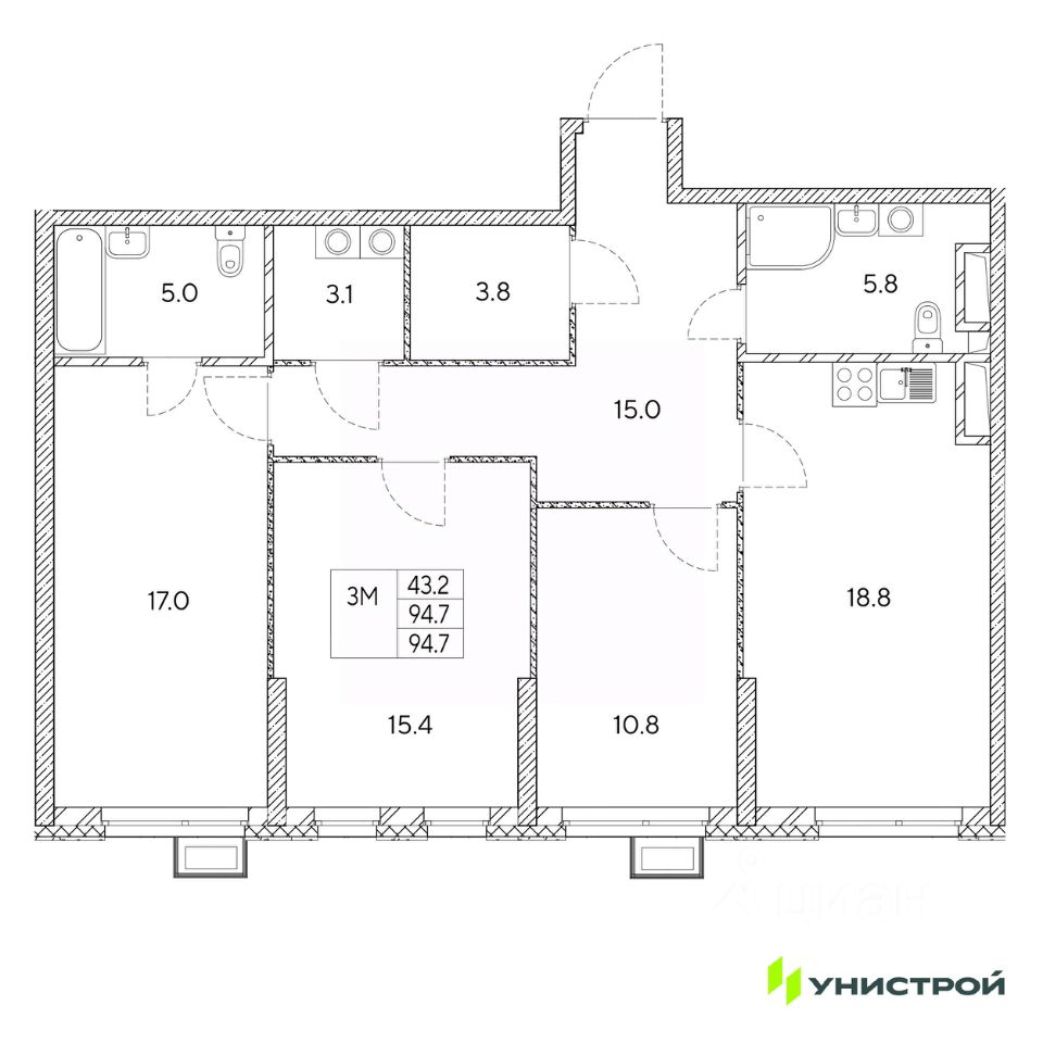Общая площадь94,7 м2