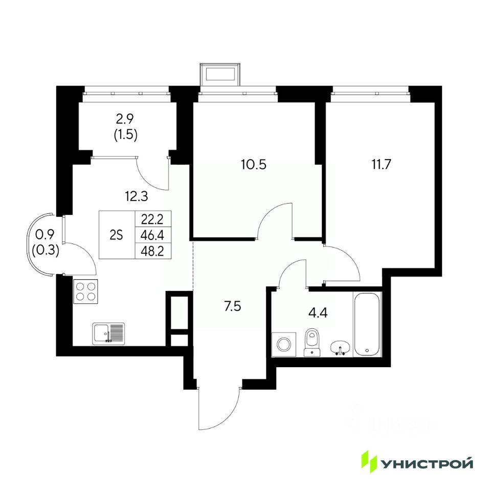 Общая площадь48,2 м2