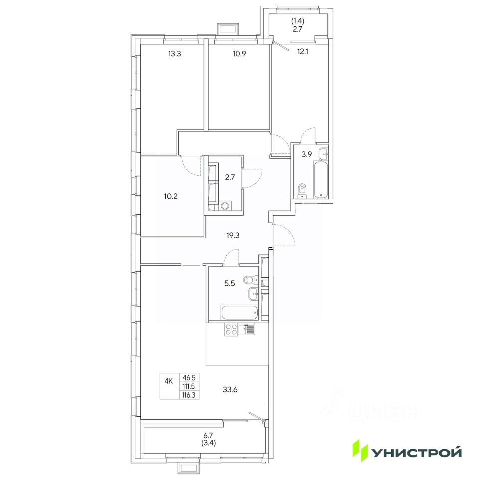 Общая площадь116,3 м2