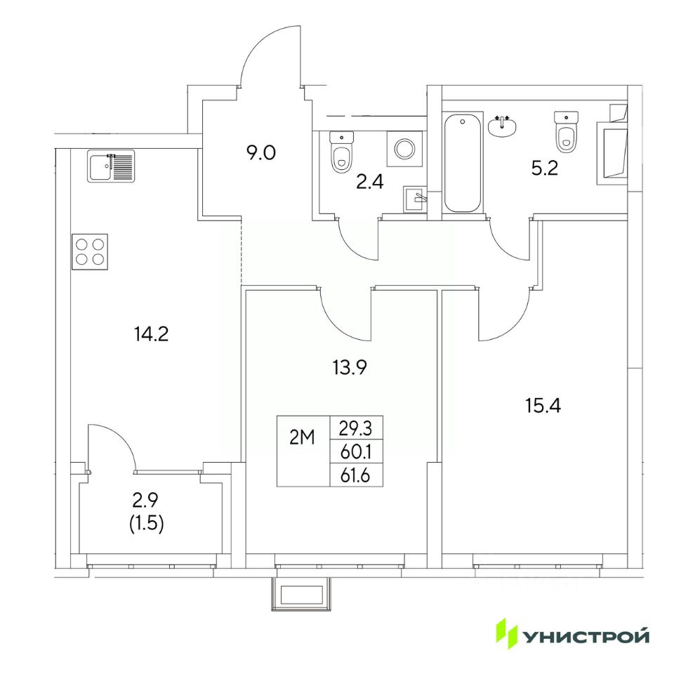 Общая площадь61,6 м2