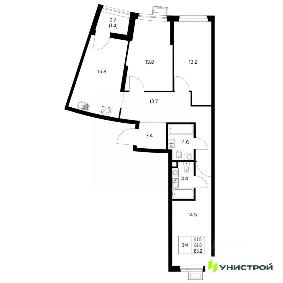 Общая площадь83,2 м2