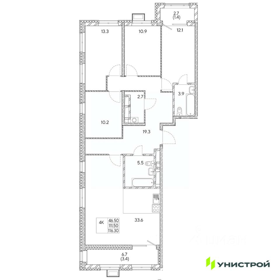 Общая площадь116,3 м2