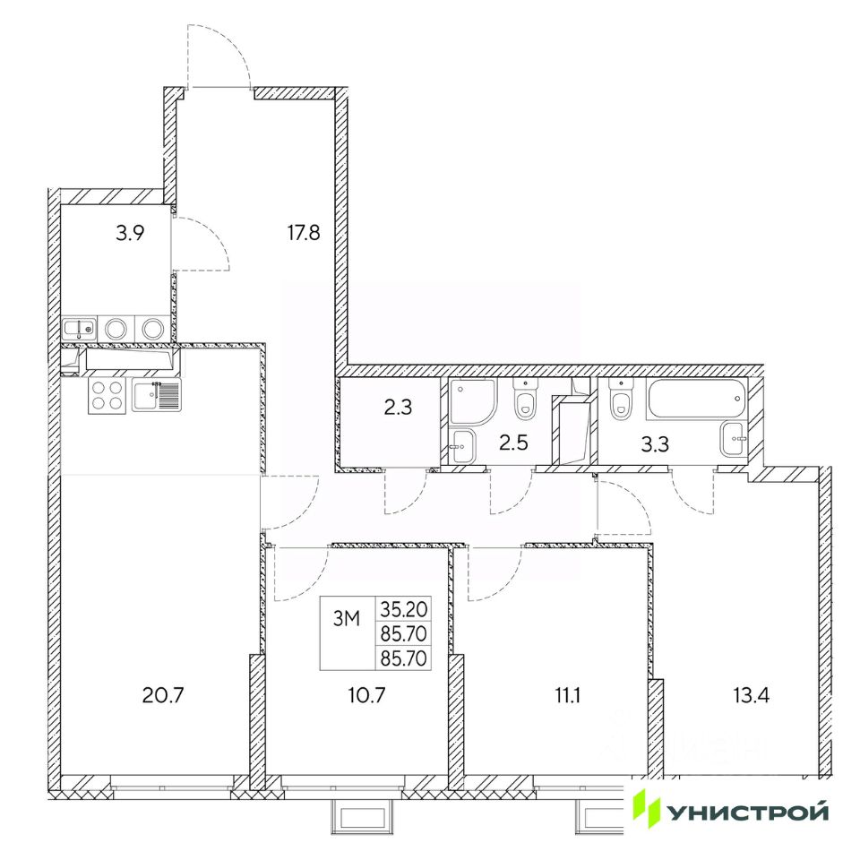 Общая площадь85,7 м2