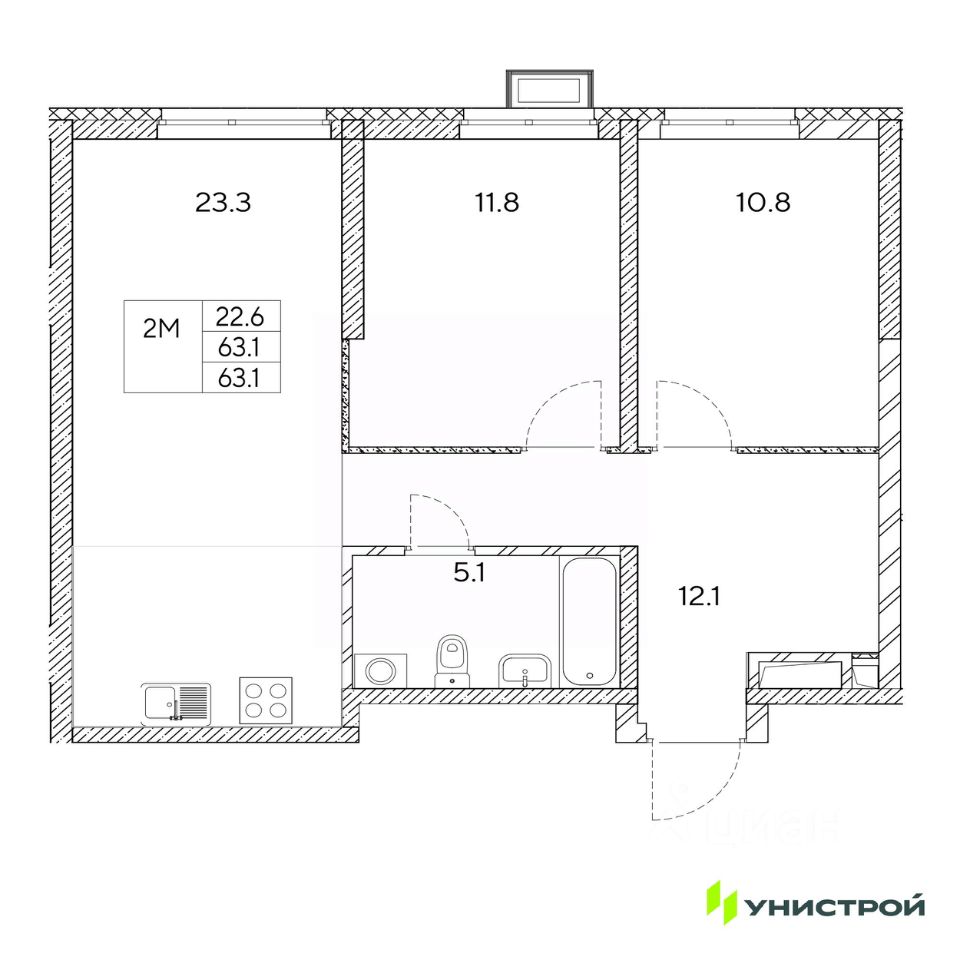 Общая площадь63,1 м2