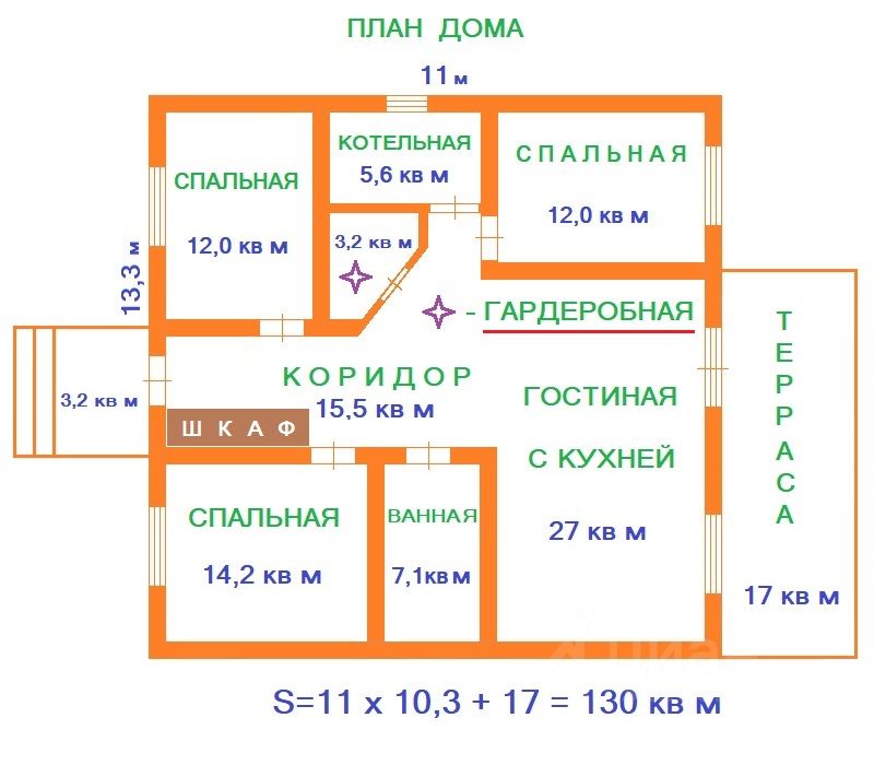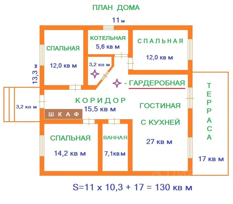Большой и комфортный дом с множеством помещений, создает ощущение надежности и стабильности. Он красив без излишеств, притягателен без вычурности. И специально для прекрасных дам имеется гардеробная комната Этот загородный дом полностью отвечает всем современным тенденциям в коттеджном строительстве. Он крепкий, теплый, безусловно привлекательный и очень добротный Внешняя красота и внутренняя отделка делают его заманчивым предложением для всех, кто мечтает о собственной, максимально удобной резиденции за городом Дом очень комфортен для проживания большой семьи. В проекте внутренней архитектуры предусмотрены все необходимые для жизни помещения, такие как бойлерная, гардеробная, санузлы, ванная. Ну и, конечно, 3 спальни и гостиная, которые очень удачно расположены.