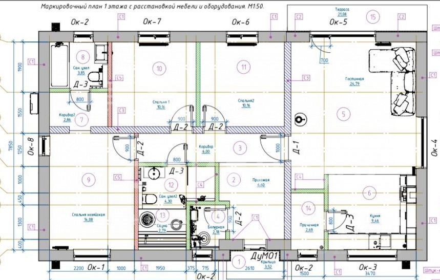 Характеристики дома: - фундамент- ленточный с буронабивными сваями, - стены- пеноблок 300, - крыша — мягкая кровля с утеплением 200 мм, - отопление система водяной ''теплый пол'', - предусмотрена система вентиляции, - водоснабжение- скважина глубиной 38 м, - электричество 15 к Вт, - установлен электрический котел ''Термикс'' на 9 кВт, - канализация- септик (кольца) объемом 7,5 м3.