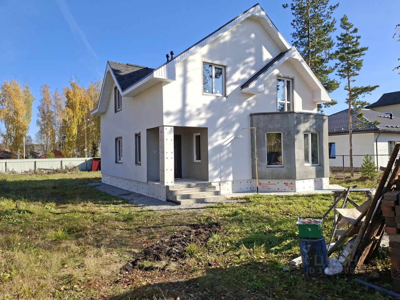 Участок распологается в тихой, ровной, возвышенной (не забалоченной!!!) местности, далеко от основной дороги. Фундамент: Фундамент устроен на основании ,,подушки,, состоящий из котлована глубиной 1000мм, заполненной из скальной породы фракции 200мм200мм, толшиной 800мм, дресвы толшиной 100мм, отсева фракции 20мм 20мм толшиной 100мм, утрамбованной. ЖБплита залитая 350мм высоту и ЖБ ростверг на плите 500мм высоту. Пол: Полы ровные под маяк, 50мм тёплые полы, 50мм пеноплаласт,100мм бетон,10мм фольга. Стены: Твинблок 300мм, утеплено каменной ватой 100мм, фасадная штукатурка Шуба. Кровля: Мягкая черепица Сота черный, ковёр, osb 9mm, пароизоляция, всё ТЕХНОНИКОЛЬ, Утепление минвата 400мм(4 слив по 50мм) + фольгированная теплоизол 10мм( потолка мансарды) (кровля сухая).