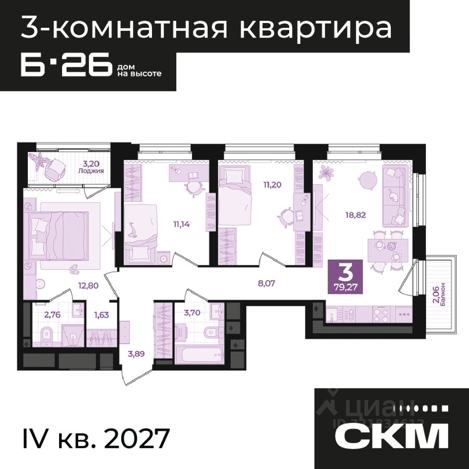 Общая площадь79,27 м2