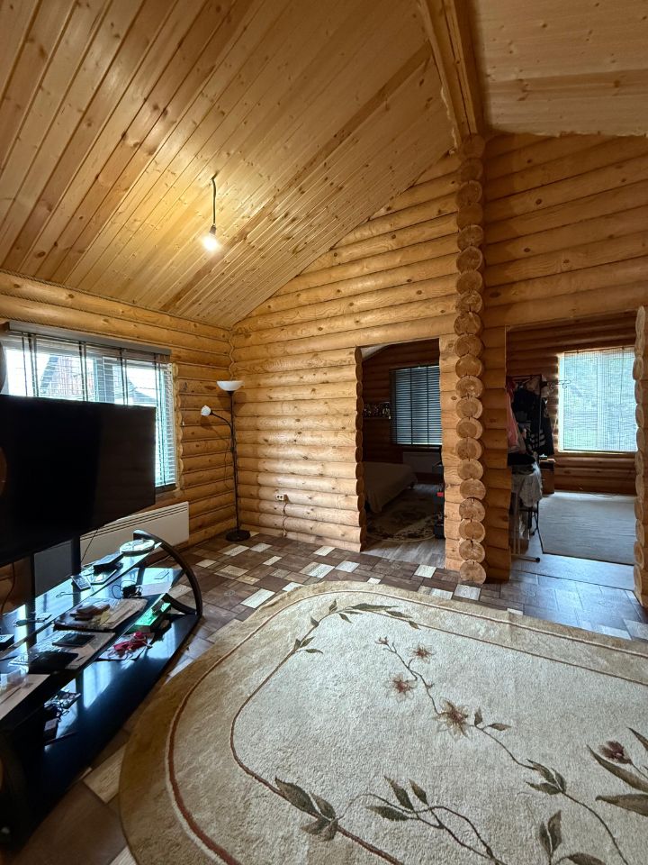 Продаём просторный и уютный дом с баней из оцилиндрованного бревна. Продаём в связи с переездом в другой город. Дом переведён в статус жилое!!! Прописка есть!!! О доме: высокие потолки под крышу, три комнаты( зал+две спальни), кухня, гардеробная, коридор, сан узел, баня(комната отдыха, помывочная, парилка). В каждой комнате установлены надёжные электрические конвекторы Nobo, а также выведены провода для подключения электрических тёплых полов. В скважину заведен греющий кабель.В бане в комнате отдыха уже установлен тёплый пол. В доме есть проводной интернет+wi fi, установлен усилитель сотовой связи, спутниковое телевидение!!! При продаже оставляем всю технику и мебель!!! Об участке: имеется стоянка на 4 автомобиля.
