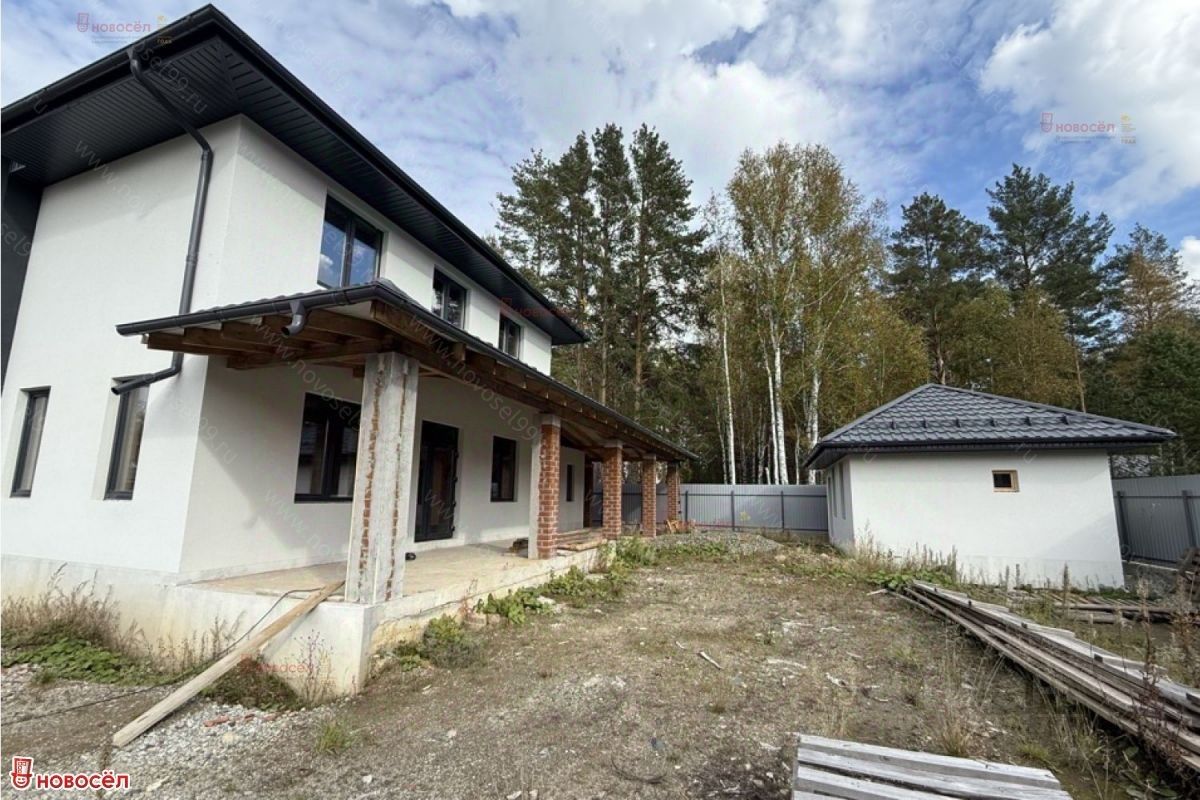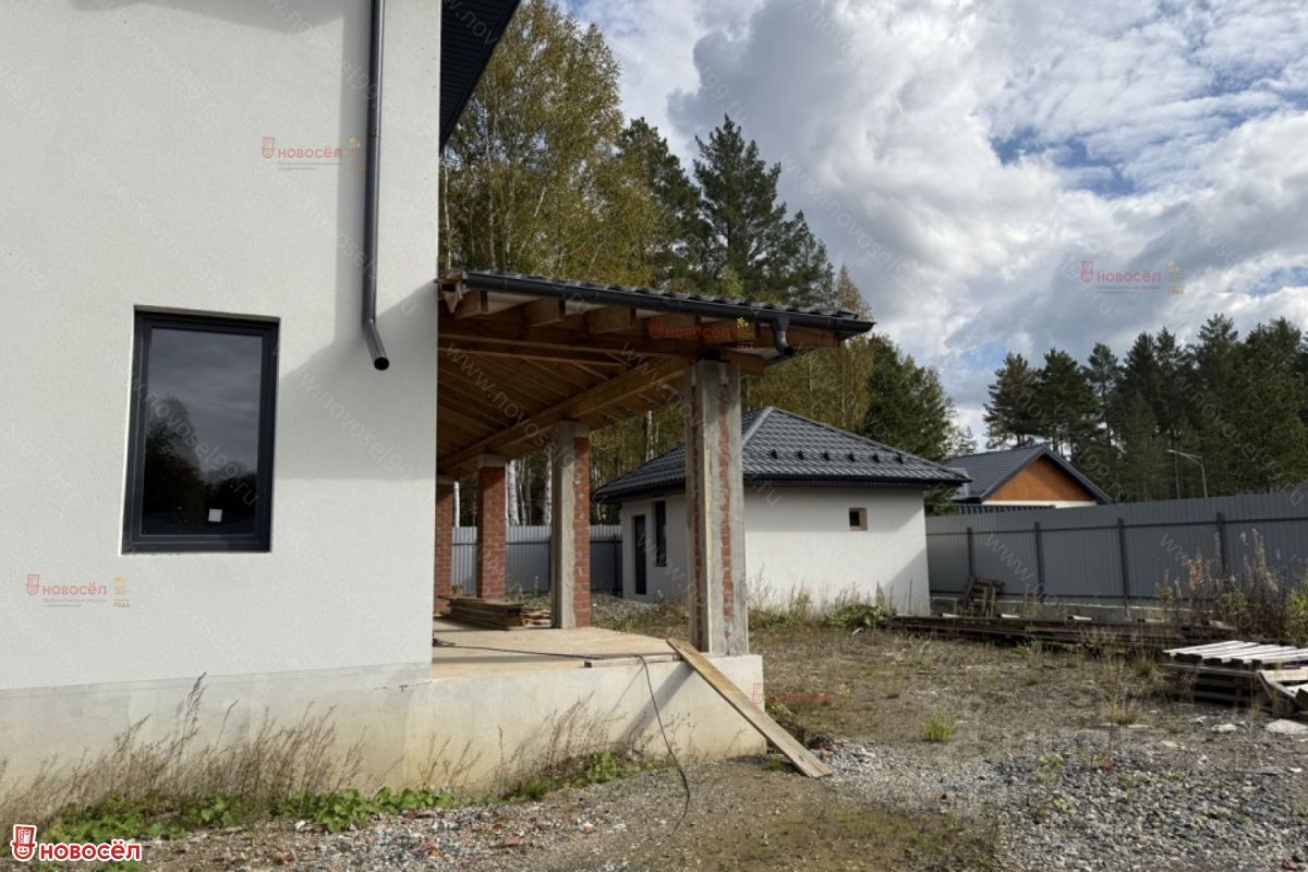 Объект N 194406. Продается капитальный, просторный 2- этажный загородный дом 234 кв. м. с шикарной террасой 53 кв. м, гаражом 35 кв. м, отдельностоящей баней 30 кв.м, на большом участке 10 соток, сделана подготовка для установки бассейна. Расположение - коттеджный поселок - Заповедник, парк Ласточка! 25 километров от Екатеринбурга по Челябинскому тракту, в экологически чистом Сысертском районе, время в пути от Екатеринбурга по Челябинскому тракту занимает 20 минут. Назначение земель: Земли населенных пунктов. Разрешенный вид использования: ИЖС. На участок выполнен съезд, заведён газ, электричество, установлен Септик, скважина, также предусмотрена возможность подключения к центральному водоснабжению. Все коммуникации (кроме газа), заведены в дом (пока без подключения). Электричество 25 kW, 380 V. Забор на фундаменте: буронабивные сваи, ростверк, профлист. ДОМ 2 этажа: Фундамент - буронабивные сваи, ростверк, плита. Материал стен - кирпич (Ревда) 380 мм + базальтовый утеплитель 100 мм + декоративная штукатурка. Межэтажное перекрытие из плит. Армопояс, гидроизоляция, пароизоляция и теплоизоляция - по технологии. Чердак холодный, вентилируемый. Крыша из металлочерепицы, кровельные свесы подшиты софитами, выполнена водосточная система. Качественная входная дверь с терморазрывом. Окна - пятикамерный профиль 70 мм, с ламинацией. Практичная и удобная планировка: 4 изолированных спальни, 1 из которых мастер-спальня с собственным санузлом и гардеробной, просторная кухня-гостиная с зоной отдыха, 3 санузла (1 на 1 этаже, 2 на втором), гараж 35 кв. м, крытая терраса 53 кв. м, дополнительные помещения: отдельная котельная 7 кв.м и хозблок 3,36 кв.м. Готовность дома: требуется разводка коммуникация внутри дома, подключение, внутренняя отделка. БАНЯ (1 этаж): Фундамент - буронабивные сваи, ростверк, плита. Материал стен - кирпич (Ревда) 380 мм + базальтовый утеплитель 100 мм + декоративная штукатурка. Межэтажное перекрытие из плит. Армопояс, гидроизоляция, пароизоляция и теплоизоляция - по технологии. Чердак холодный, вентилируемый. Крыша из металлочерепицы, кровельные свесы подшиты софитами, выполнена водосточная система. Качественная входная дверь с терморазрывом. Окна - пятикамерный профиль 70 мм, с ламинацией. Коммуникации заведены в баню, требуется разводка и подключение. Планировочное решение бани: зона отдыха, помывочная, парилка. Рядом с баней предусмотрена установка бассейна. Территория КП закрытая, охраняемая. На территории есть: магазины, супермаркеты, освещенные пешеходные тротуары, лесопарк (200 Га, лыжня/ тропа здоровья), пруд и речка, детский сад (отведен земельный участок), детей в школу доставляет школьный автобус, город мастеров (пекарня, пивоварня, магазин фермерских продуктов), автомойка/шиномонтаж, зоопарк (10 Га), бесплатный контактный зоопарк с разнообразными животными прямо на территории поселка, детские площадки, поле для мини футбола, площадка для волейбола, теннисный корт, уличные тренажеры. Дом построен качественно, строился для себя