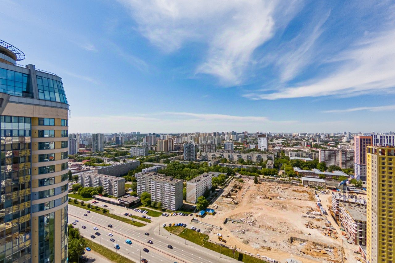 ЭКСКЛЮЗИВНАЯ КВАРТИРА С ПАНОРАМНЫМИ ВИДАМИ которая находится на высоте 130 метров в одном из трех впечатляющих 37-этажных, небоскребов комплекса ''Чемпион Парк''. 33 этаж - это захватывающие панорамные виды, открывающие величественную картину Екатеринбурга.