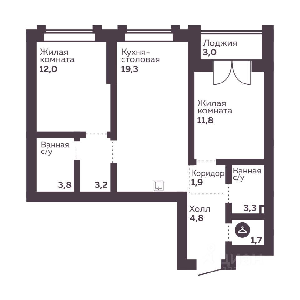 Общая площадь61,8 м2
