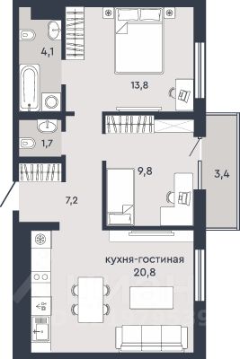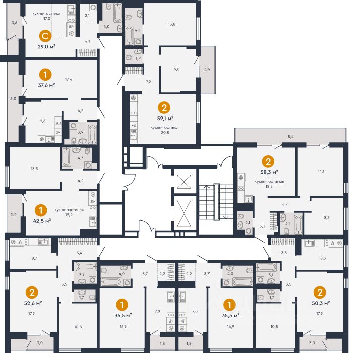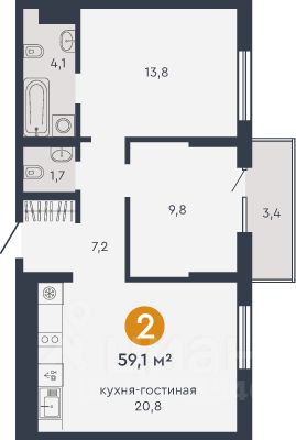 Общая площадь59,1 м2