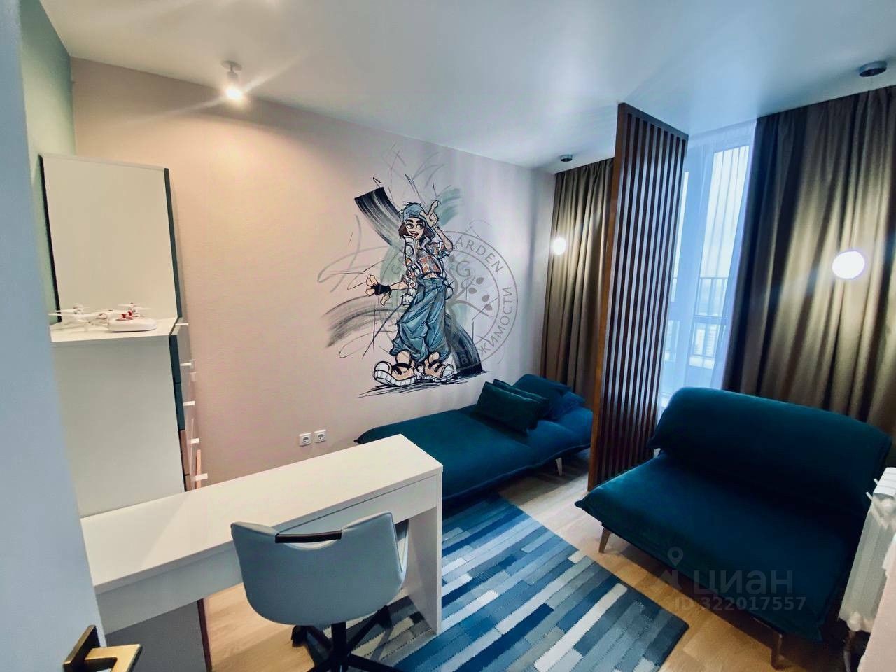 * Два кресла-кровати (по 96.000 р. каждое), рабочая зона с столом и креслом, просторный шкаф.
