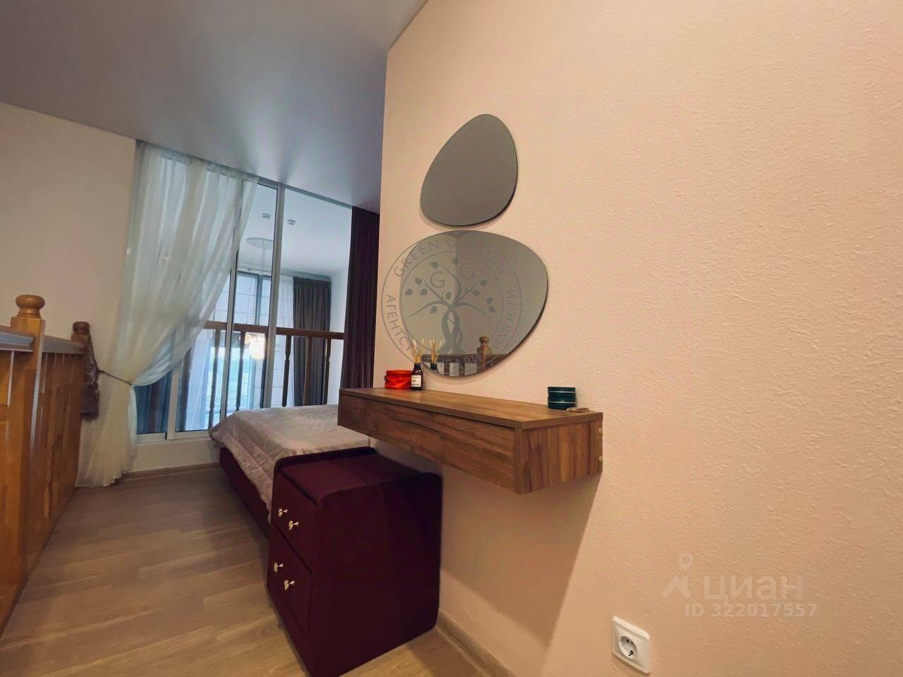 * В ней просторная кровать с отличным матрасом (остается), туалетный столик и зеркало.